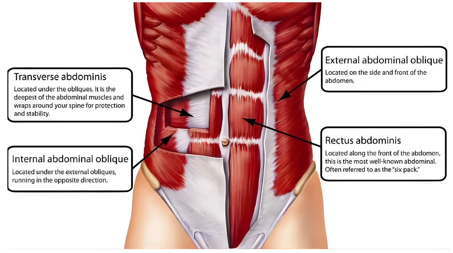 Transverse abdominis (TVA) wraps around your torso like a natural weight belt and is responsible for the tight, drawn-in waistline look.