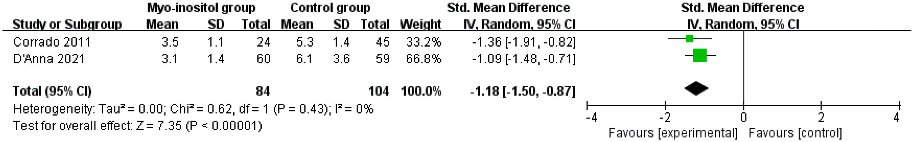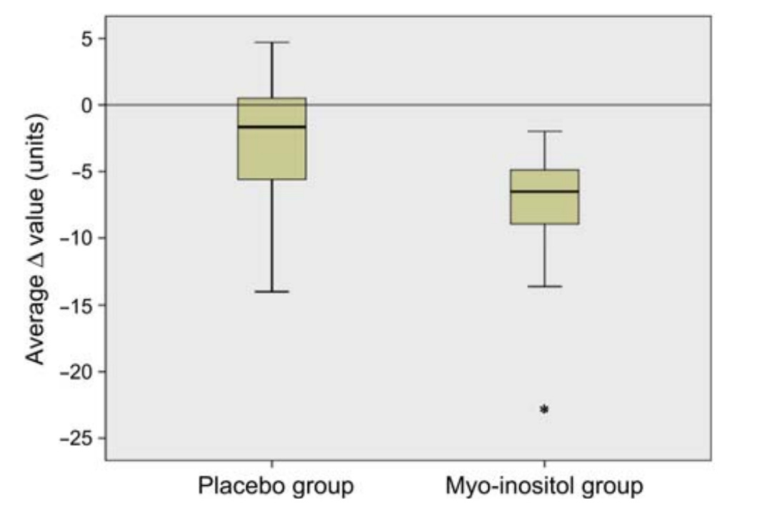 A 12-month clinical trial by Santamaria et al. recruited 80 postmenopausal women with metabolic syndrome. All women were randomly divided into two equal groups of 40 women each: one group received 2 grams of myo-inositol 2x daily, while the other received a placebo. Relative to placebo, the myo-inositol group demonstrated significant improvements across multiple metabolic biomarkers:
