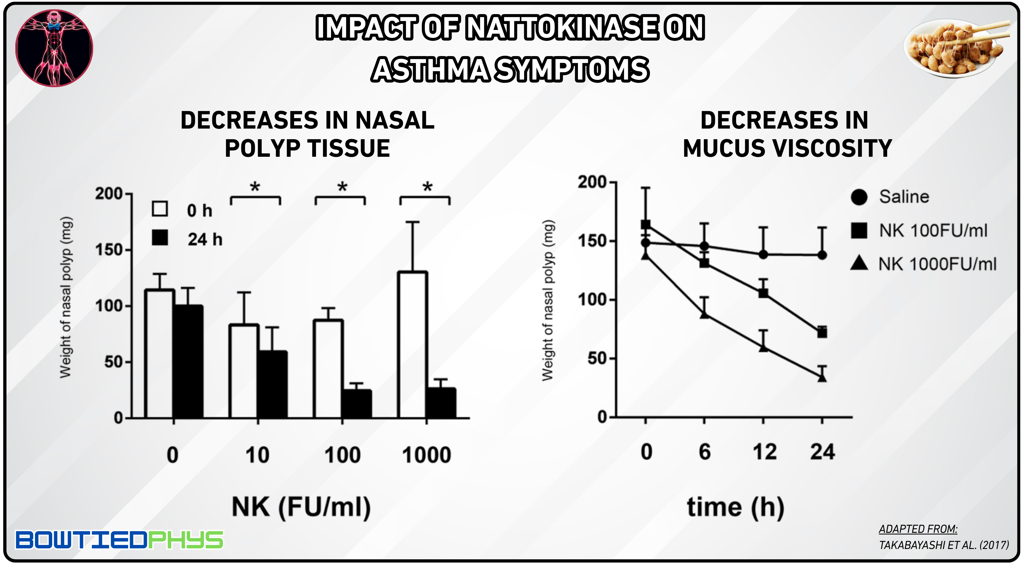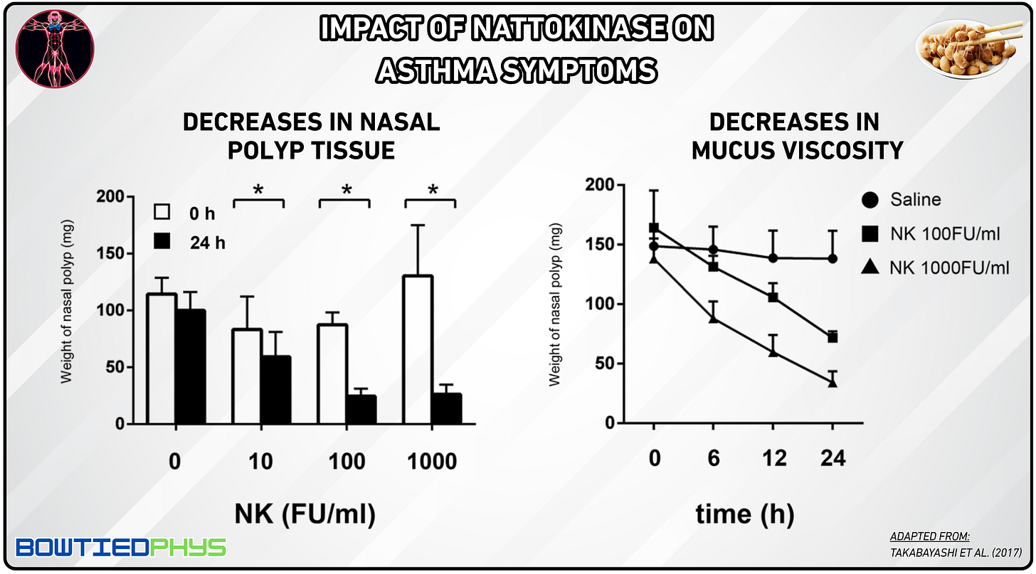 In a study by Takabayashi et al. (2017)14, nasal polyp tissue was treated with nattokinase at concentrations of 10–1,000 FU/ml. NK significantly degraded fibrin in the tissue and reduced the viscosity of nasal discharge and sputum promoting clearer airways by alleviating mucus buildup.