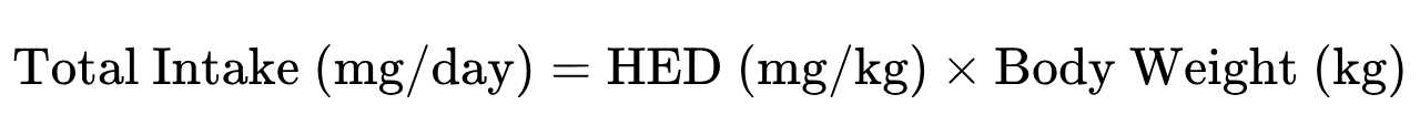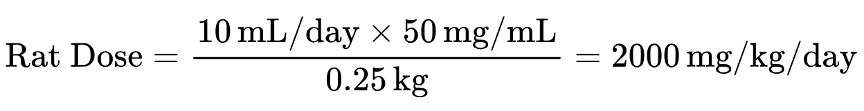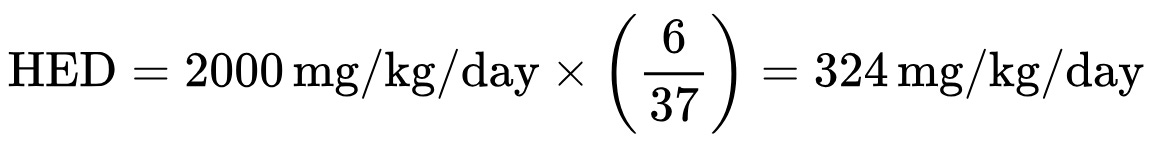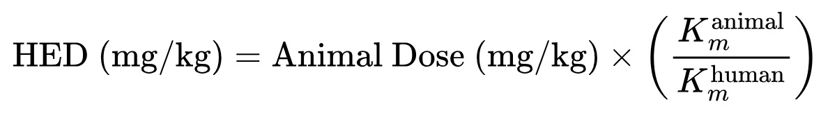 To account for metabolic differences, we convert the rat dose to a human equivalent dose (HED) using the following formula: