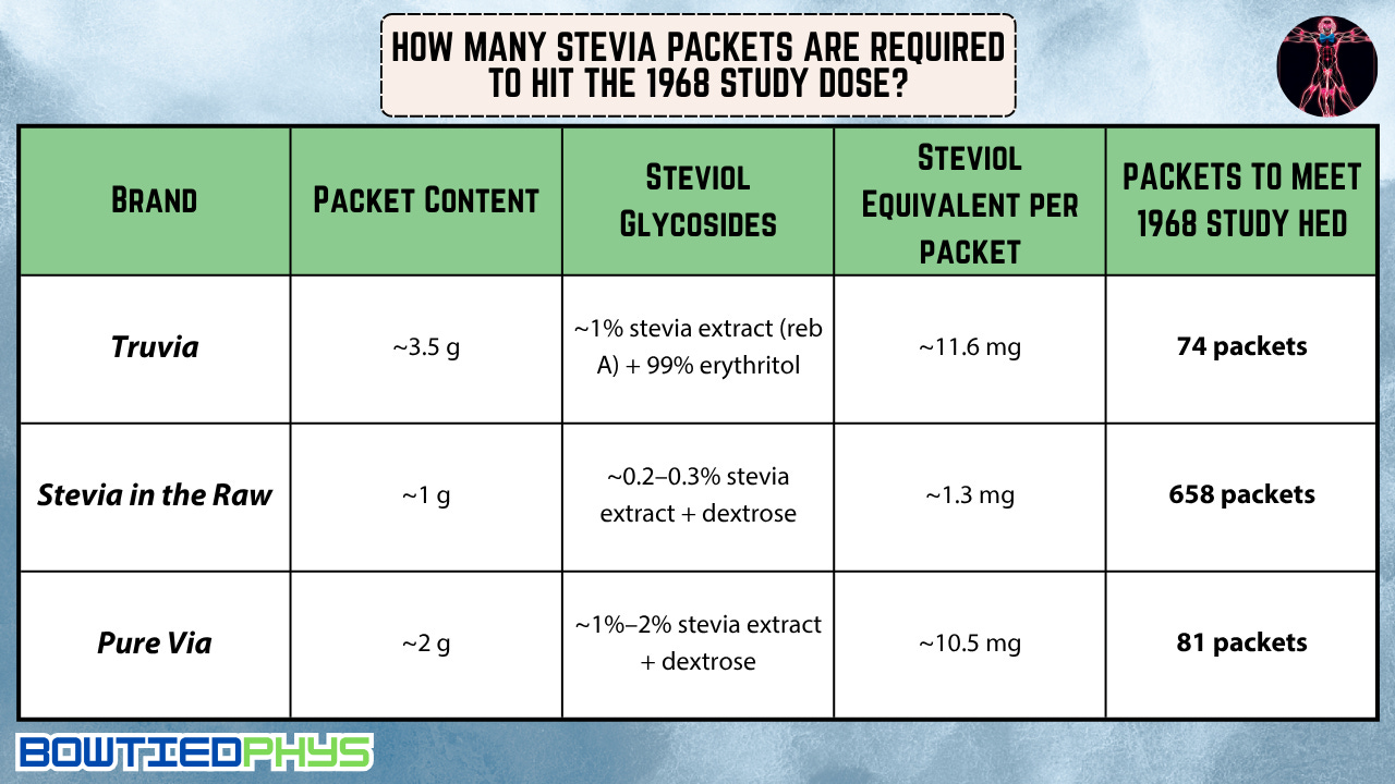 At a minimum, this dosing equates to 74 Truvia packets for a 175 lb man.