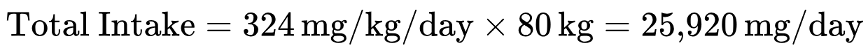 Now let’s calculate the equivalent total dried leaf intake for an 80 kg (~175 lb) human: