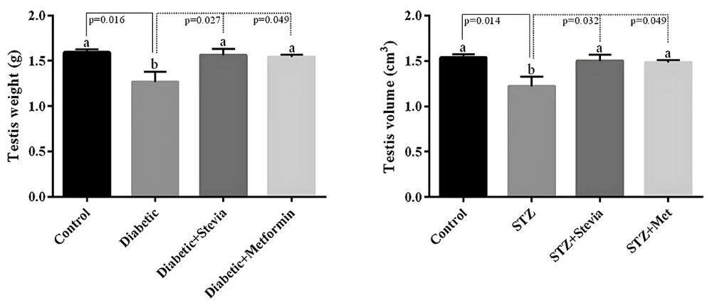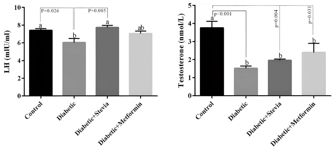 Gholizadeh, 2019 → The researchers concluded stevia plays a role in diminishing diabetes-associated reproductive problems and infertility in males. Shown by diabetic rats given stevia extracts demonstrating increased: