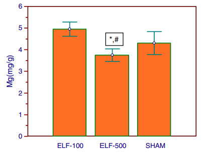 When rats were exposed to extremely low-frequency magnetic fields (ELF-MF) over a 10-month period, they exhibited significantly lower concentrations of calcium (Ca), magnesium (Mg), & zinc (Zn) in bone tissue.