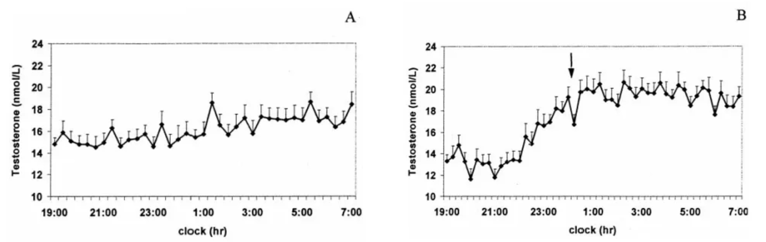 Luboshitzky R, Zabari Z, Shen-Orr Z, Herer P, Lavie P. Disruption of the nocturnal testosterone rhythm by sleep fragmentation in normal men. J Clin Endocrinol Metab. 2001 Mar;86(3):1134-9. doi: 10.1210/jcem.86.3.7296. PMID: 11238497.