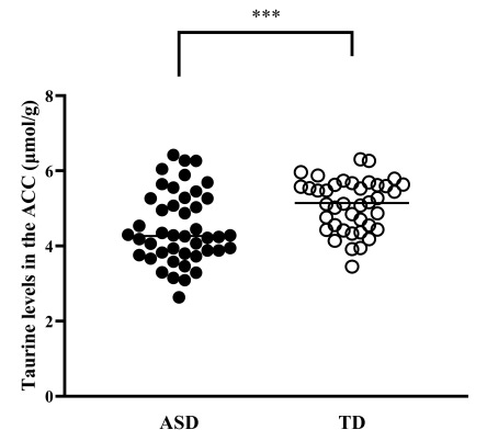 Minami A, Matsuoka K, Takahashi M, Ueda K, Ohnishi H, Fujimoto Y, Yoshikawa H, Ishida R, Takado Y, Near J, Yamatani Y, Miyasaka T, Tai Y, Ochi T, Tanaka T, Okada T, Iwata N, Makinodan M. Association between decreased taurine levels in the anterior cingulate cortex and restricted and repetitive behaviors in autism spectrum disorder: a cross-sectional study. Front Psychiatry. 2025 Dec 11;16:1700059. doi: 10.3389/fpsyt.2025.1700059. PMID: 41458030; PMCID: PMC12739181.