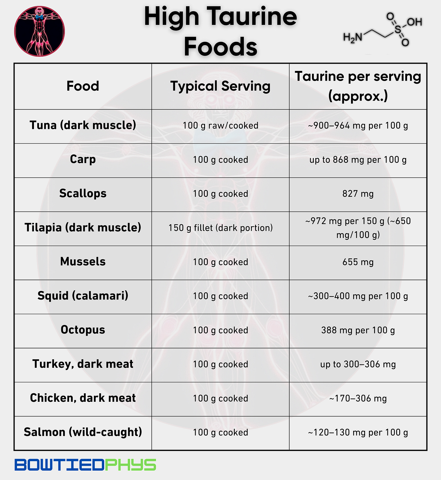 But there’s another molecule quietly sitting in the background: taurine. The amino-sulfonic acid with antioxidant, neuroprotective, & inhibitory signaling roles.