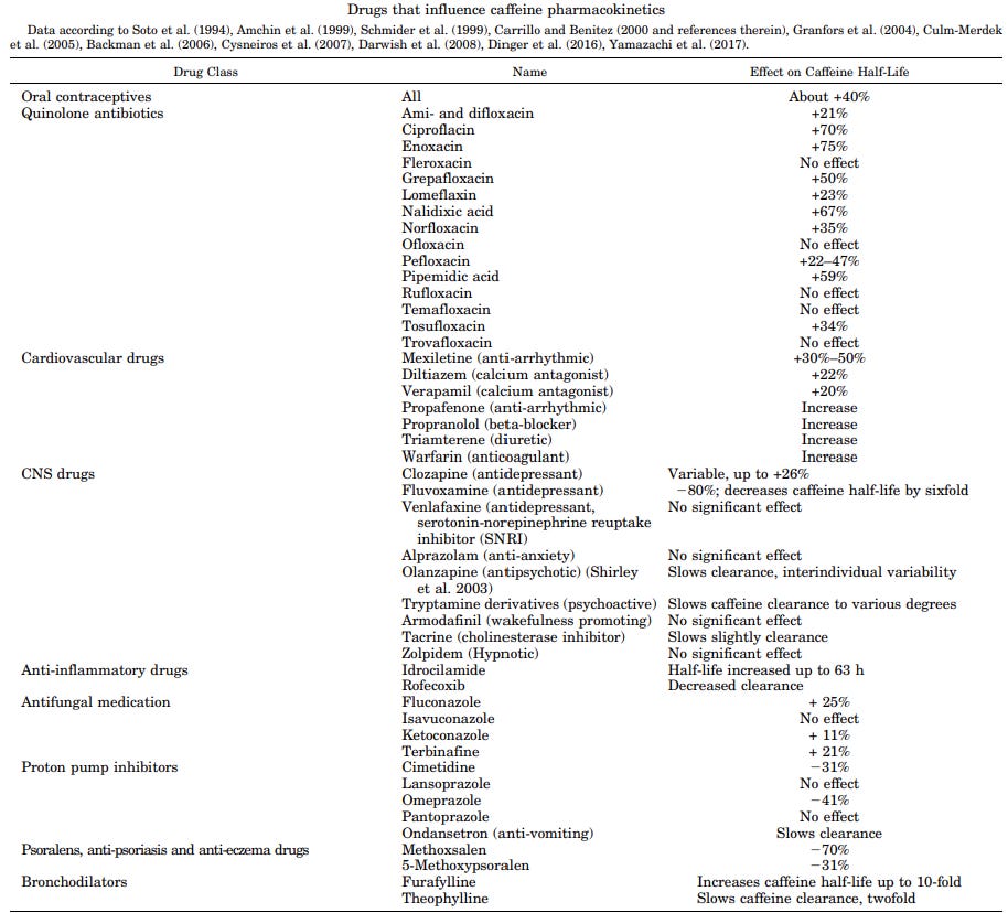 Drugs: Various drugs15 significantly alter caffeine half-life.