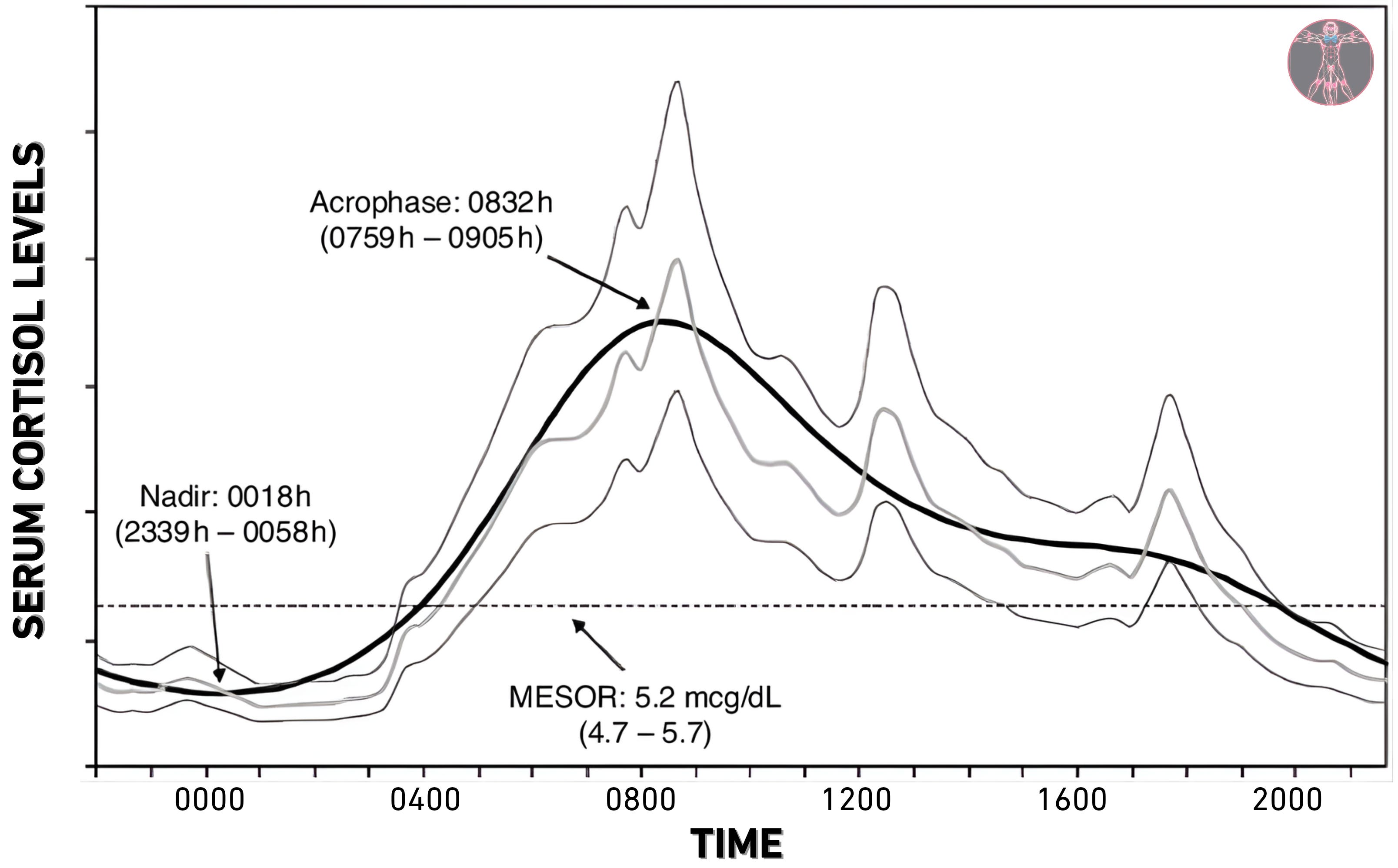 Cortisol follows a circadian rhythm2. It bottoms out during early sleep, then surges upon waking in what is referred to as the cortisol awakening response (CAR). This natural spike can double baseline levels within 30–45 minutes of waking.